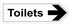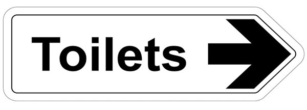 VSAFETY SHAPED SAFETY SIGN TOILETS ARROW RIGHT 300X100