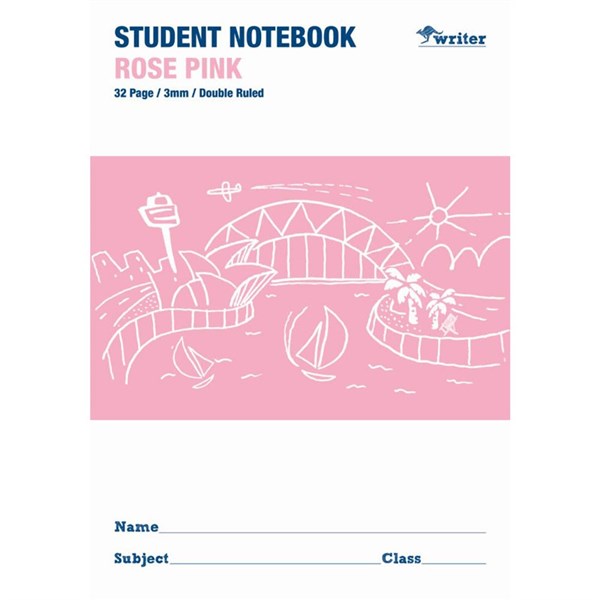 WRITER STUDENT NOTEBOOK 3MM DOUBLE RULED/GUIDE 32 PAGE 250 X 175MM ROSE PINK