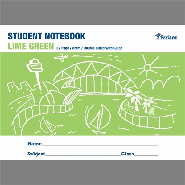 WRITER WB90600 STUDENT NOTE EXERCISE BOOK 8MM DOUBLE RULED WITH GUIDELINES LANDSCAPE 175X240MM 32 PAGE LIME GREEN