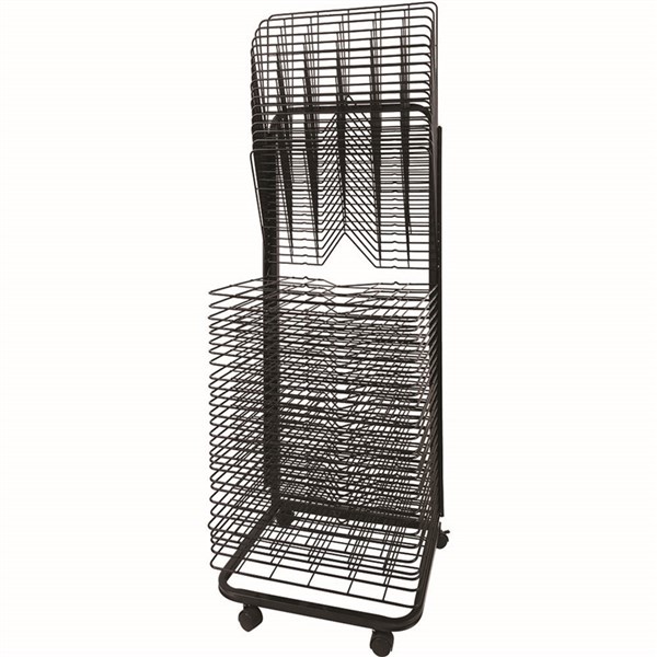 This spring loaded art rack has 45 shelves measuring 60 x 46cm, with a 15 x 12cm grid, so artwork will not fall through