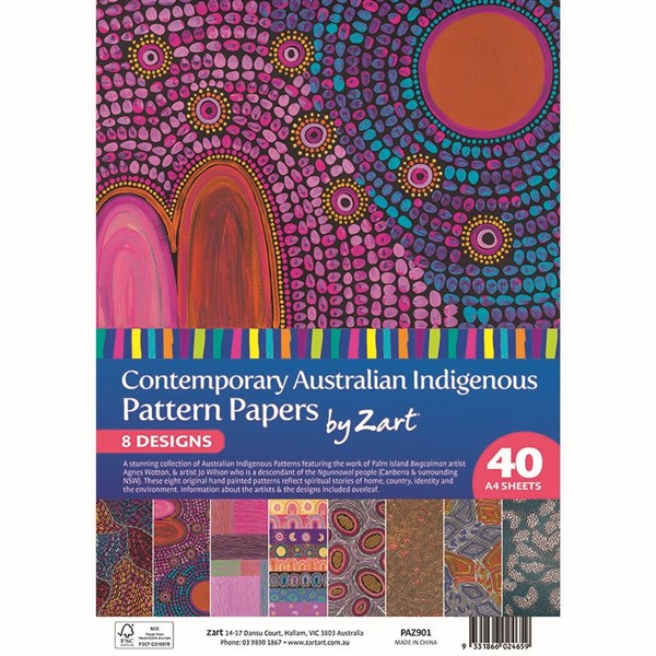 ZART PATTERN PAPER CONTEMPORARY AUSTRALIAN INDIGENOUS A4 PACK 40